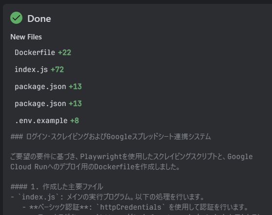 投げかけたものに対して、Planとして、何をどのように作成するかが日本語で返ってきました。
